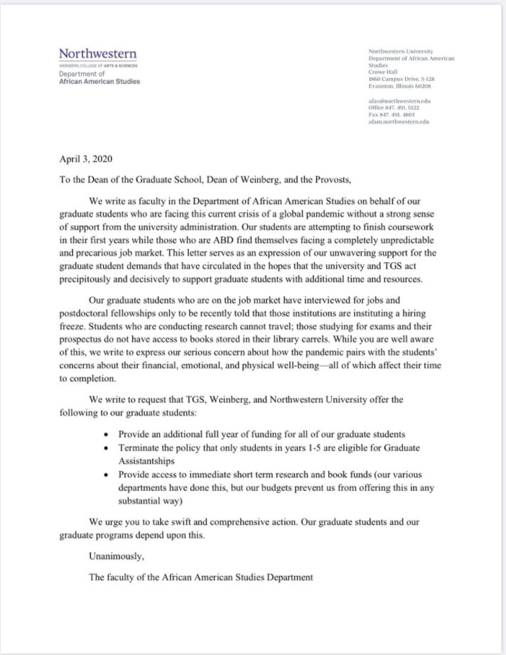 Northwestern University Graduate Workers Nugw On X Really Amazing Inspiring Letter Written By The Department Of African American Studies On Behalf Of Their Graduate Students That Echoes Many Of The Demands